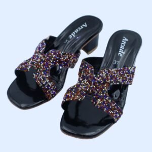 The unique toe-ring design, featuring matching golden details, provides a comfortable and secure fit while enhancing the sandal’s overall ethnic charm. Resting on a stable wedge heel, this sandal offers comfortable elevation, making it perfect for prolonged wear during weddings, festive celebrations, or any special occasion where comfort and style are key. The coordinated detailing around the sole completes this exquisite piece.