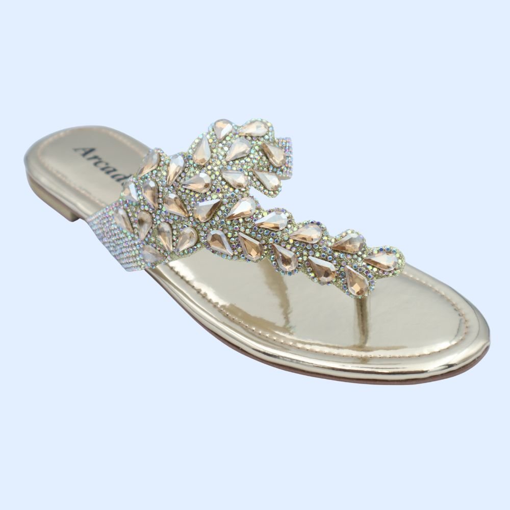 Champagne Dream Bloom Embellished Wedge Toe-Ring Sandals