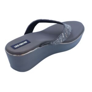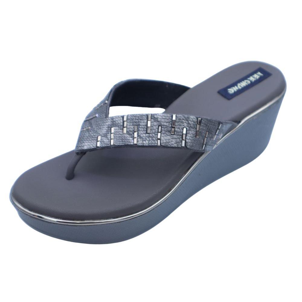 Elevate your everyday style or special occasion look with these chic Charcoal Grey Embellished Wedge Sandals. Designed for comfort and elegance, these sandals feature a broad thong strap adorned with intricate silver-toned embellishments, adding a touch of subtle glamour to your ensemble.