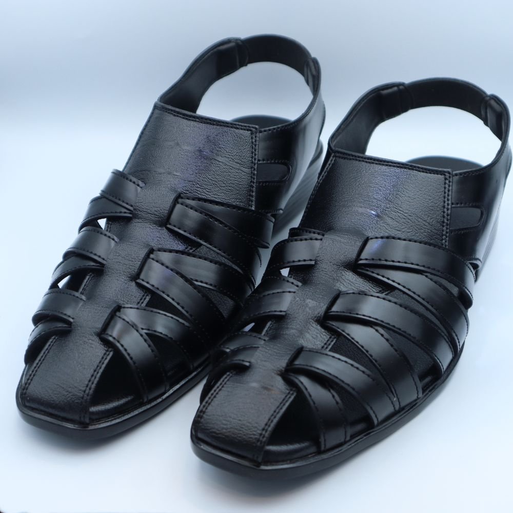 Men’s Classic Black Leather Fisherman Sandals
