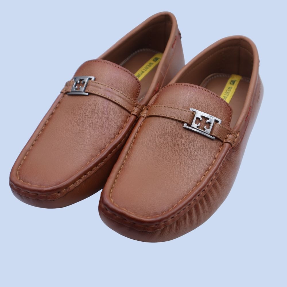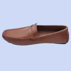 Step into comfort and style with these Men’s Classic Tan Leather Loafers, a modern and practical choice for the contemporary man in Dubai. Crafted from smooth, high-quality tan leather, these loafers feature a classic moccasin construction with prominent stitching around the toe. A sleek silver-toned metal bit across the vamp adds a touch of sophisticated detail, elevating their casual appeal. The flexible sole is designed for superior grip and comfort, making them ideal for everyday wear.