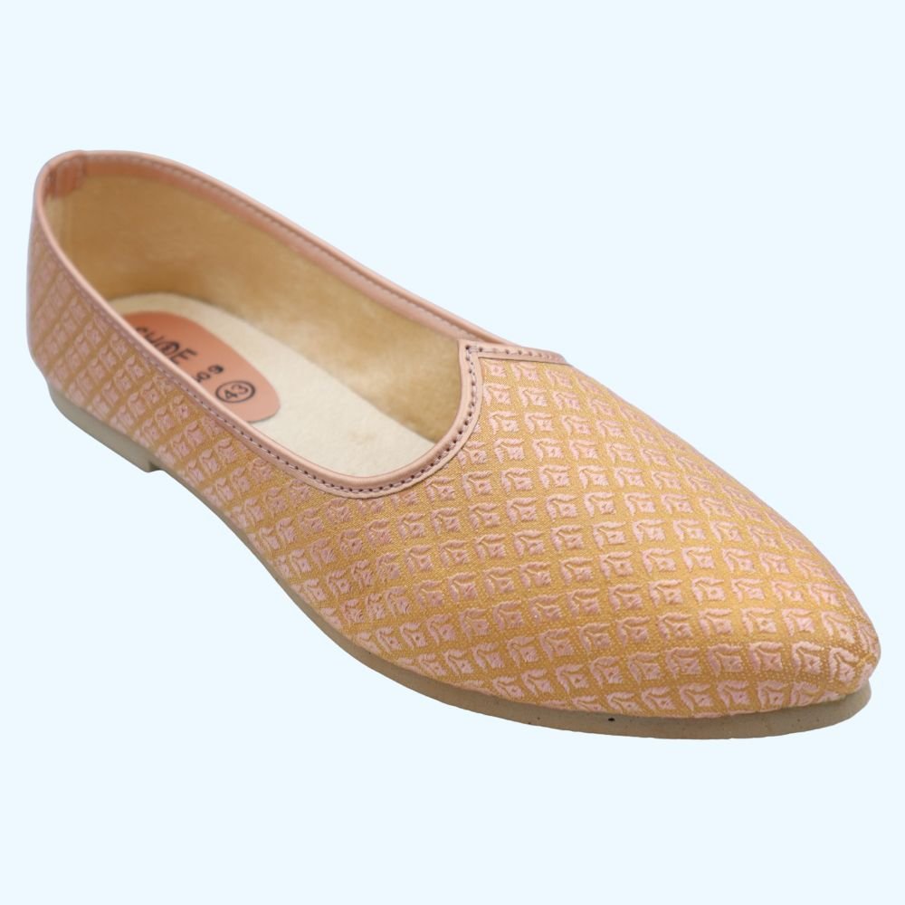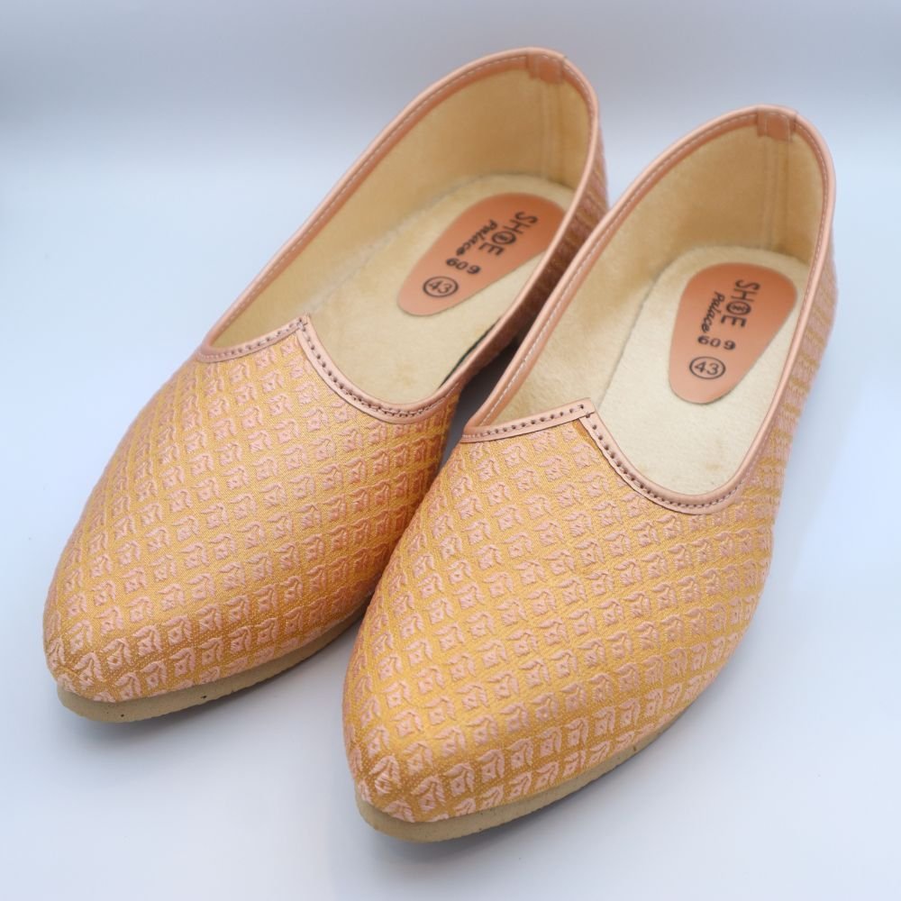 Step into a world of vibrant elegance and traditional charm with these Men’s Elegant Peach & Gold Embroidered Mojari Shoes, an exquisite choice for celebratory events and cultural gatherings in Dubai. Crafted with a delicate peach-toned fabric, these Mojari shoes feature intricate golden embroidery in a geometric pattern across the vamp, exuding sophistication and festive appeal. The classic slip-on design is lined with a comfortable interior, offering a touch of luxury and ensuring a comfortable fit for prolonged wear.