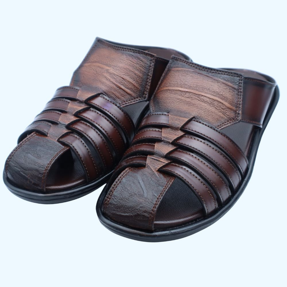 Embrace effortless style and all-day comfort with these Men’s Rich Brown Textured Leather Open-Back Fisherman Slides, a perfect footwear choice for Dubai’s warm climate and relaxed yet refined lifestyle. Crafted from high-quality genuine leather with a distinctive textured and subtly burnished brown finish, these slides feature a classic woven strap design on the front, offering both a secure yet breathable fit. The convenient open-back mule style ensures easy slip-on wear, making them ideal for seamless transitions throughout your day.