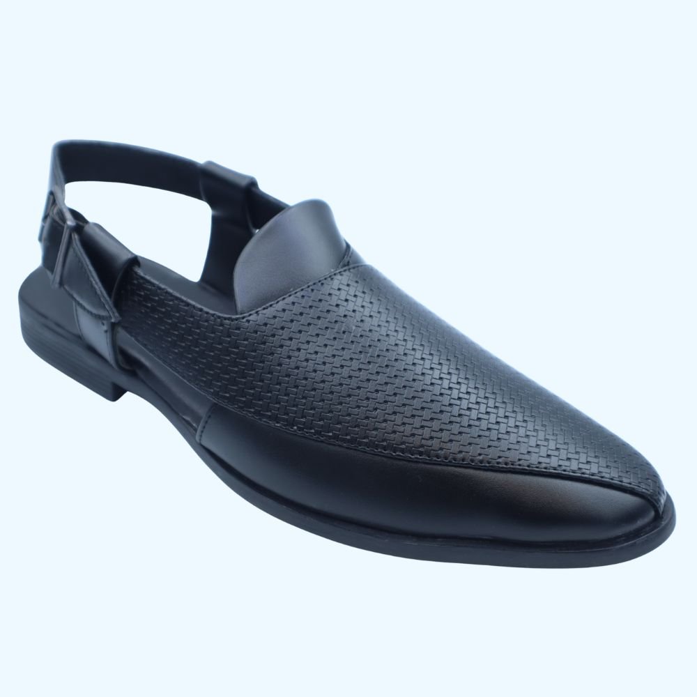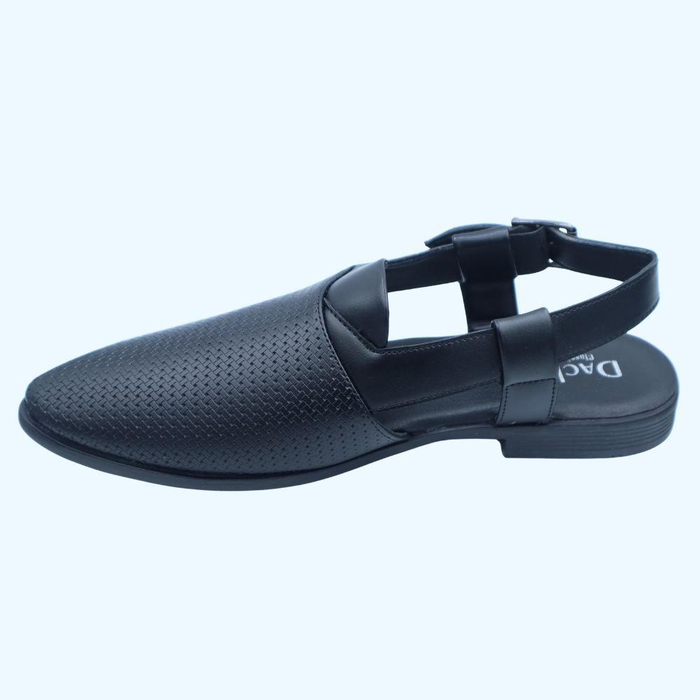 Step into refined comfort and distinguished style with these Men’s Sophisticated Black Woven Leather Sandals, an ideal footwear choice for the discerning gentleman in Dubai. Crafted from high-quality genuine black leather, these sandals feature a subtly textured woven design across the vamp, offering enhanced breathability and a touch of understated elegance. The sleek, closed-toe design with an adjustable buckle slingback strap provides a secure and polished fit, perfect for both casual and more refined casual settings.