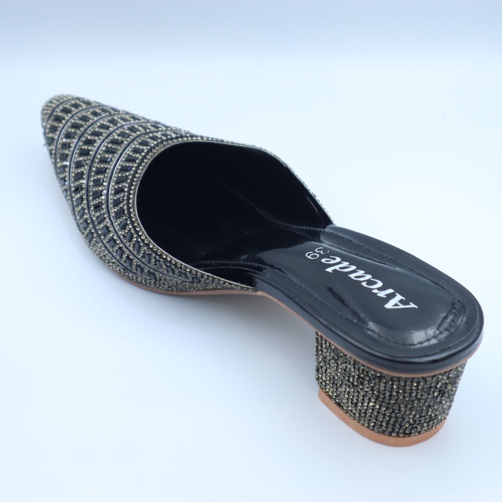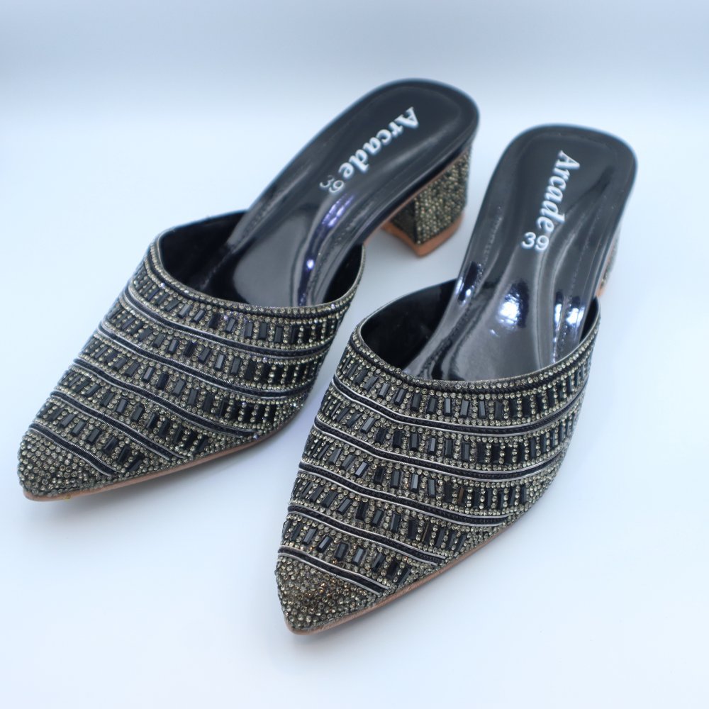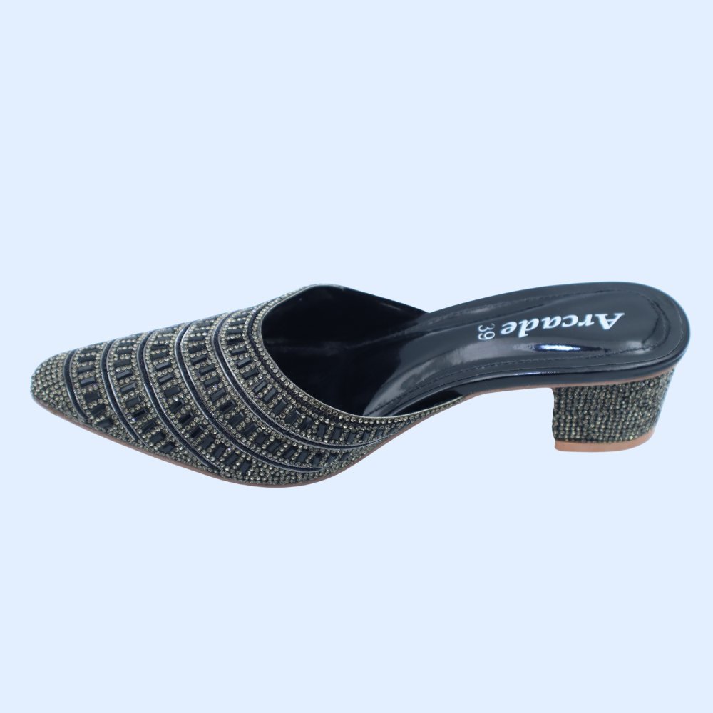 - Comfortable and stable block heel, fully adorned with matching sparkle