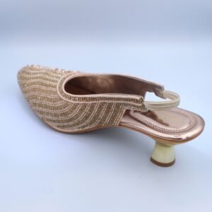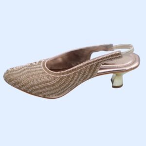 The graceful kitten heel provides a comfortable and elegant lift, while the elasticated slingback strap ensures a secure and stylish fit, allowing you to move with confidence. Perfect for weddings, grand formal events, festive celebrations, or adding a luxurious, warm sparkle to your ensemble for an evening out in Dubai, these heels are crafted to ensure you shine brilliantly.