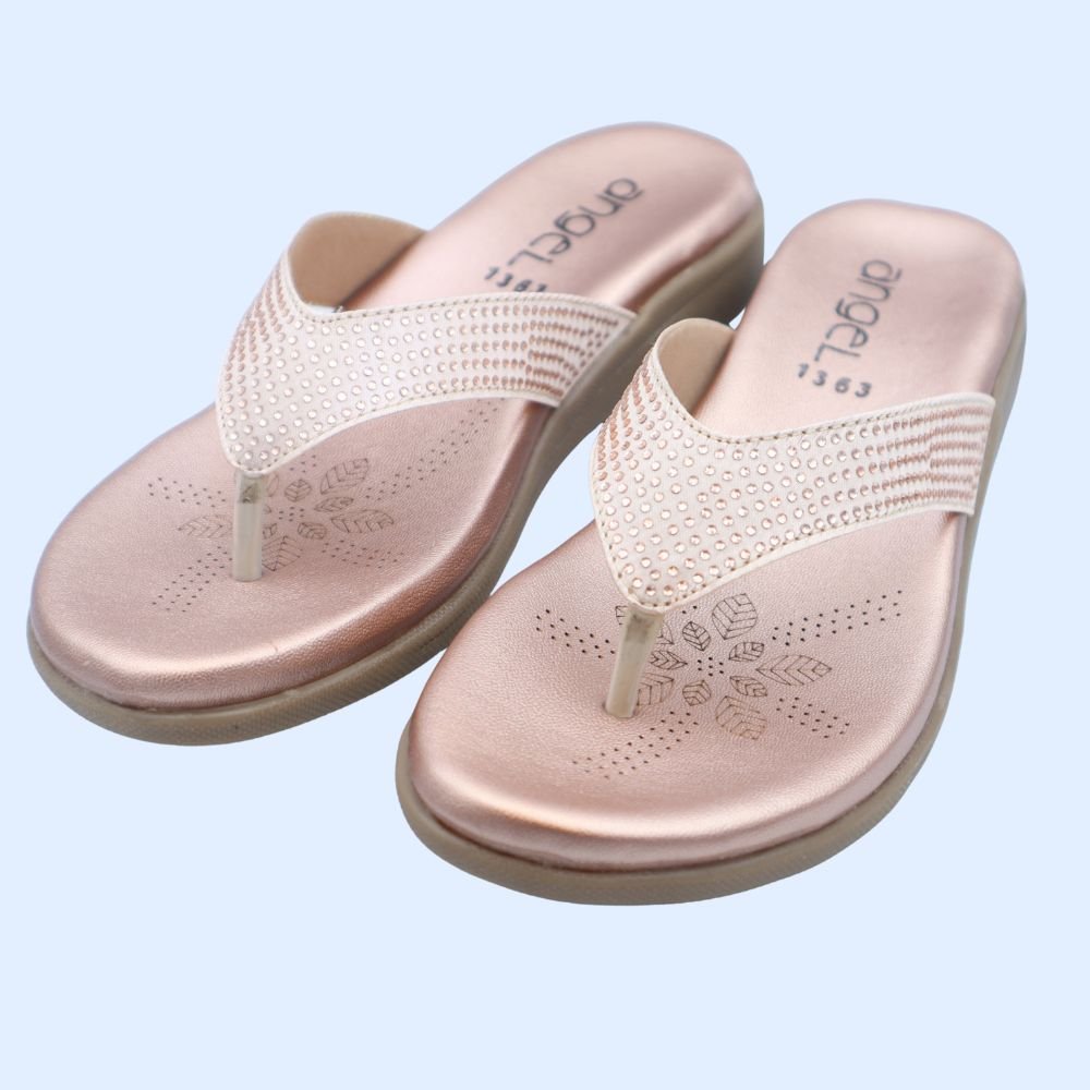 Step into sunny style with these delightful Rose Gold Sandals with Padded Insole. The wide straps are beautifully covered in sparkling rhinestones, adding a brilliant touch to this versatile and comfortable pair. These sandals are designed for both style and ease, featuring a soft, padded insole with a delicate floral pattern and ventilation holes for breathability.