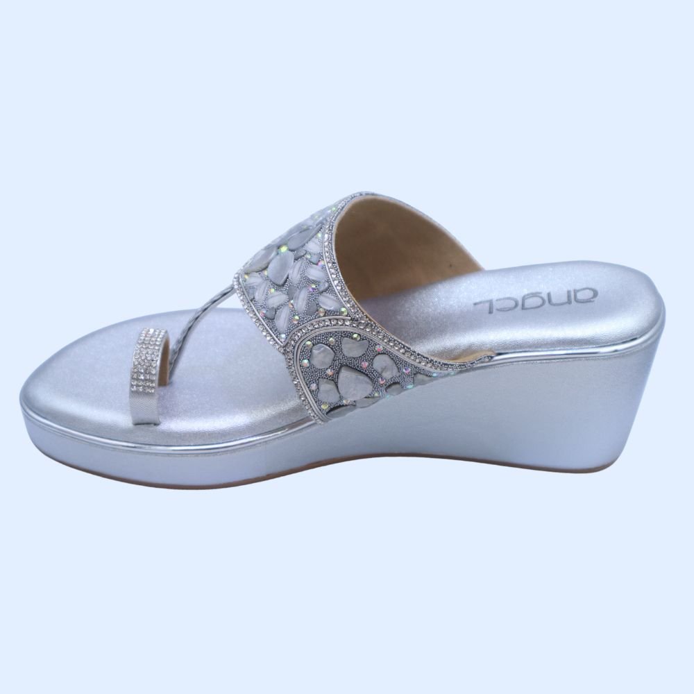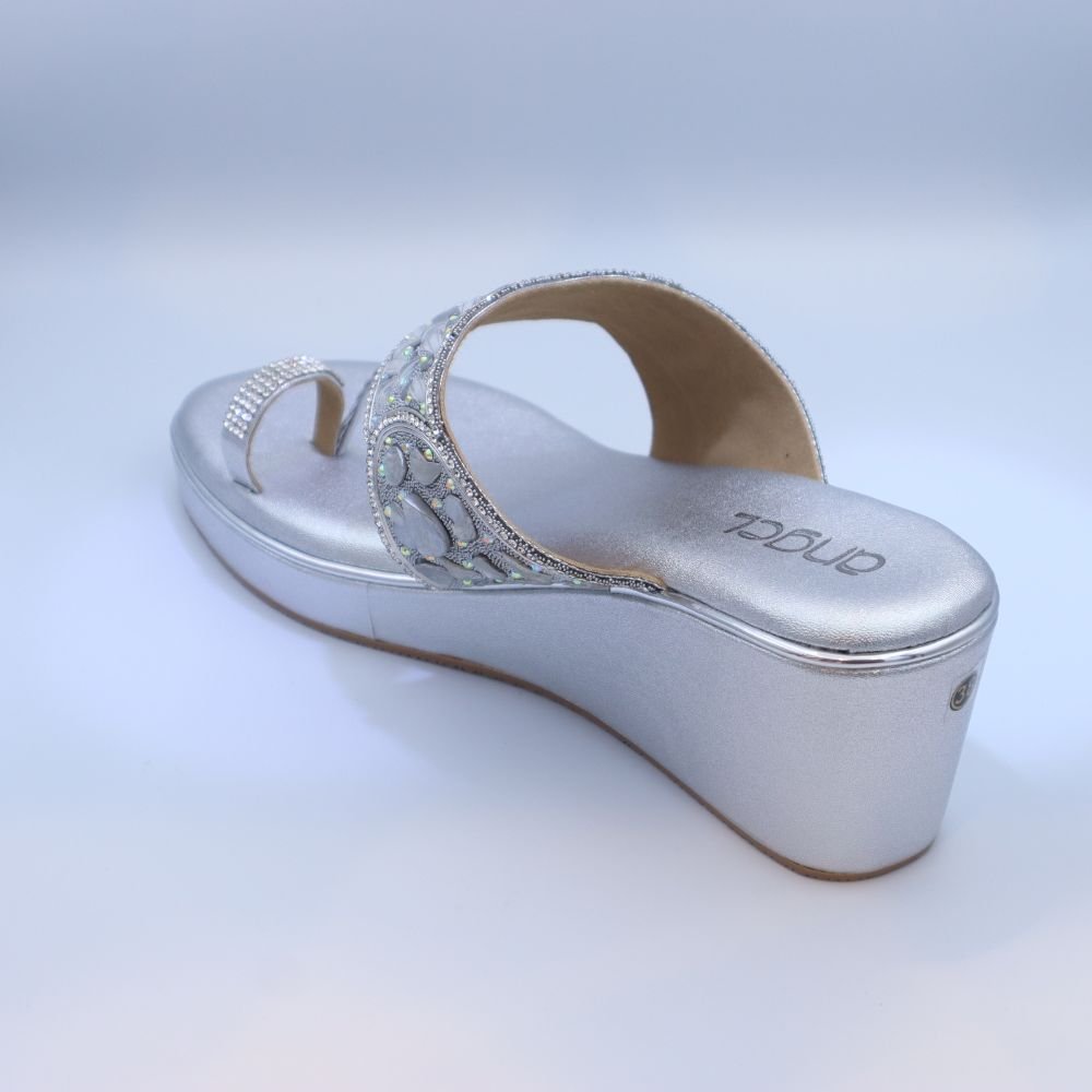 - Comfortable and stable silver wedge heel