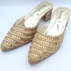 - Durable sole with a subtle bronze-metallic trim